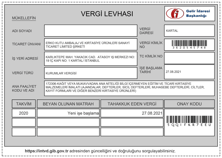 ERKO KUTU AMBALAJ VE KIRTASİYE ÜRÜNLERİ SAN.TİC.LTD.ŞTİ.
